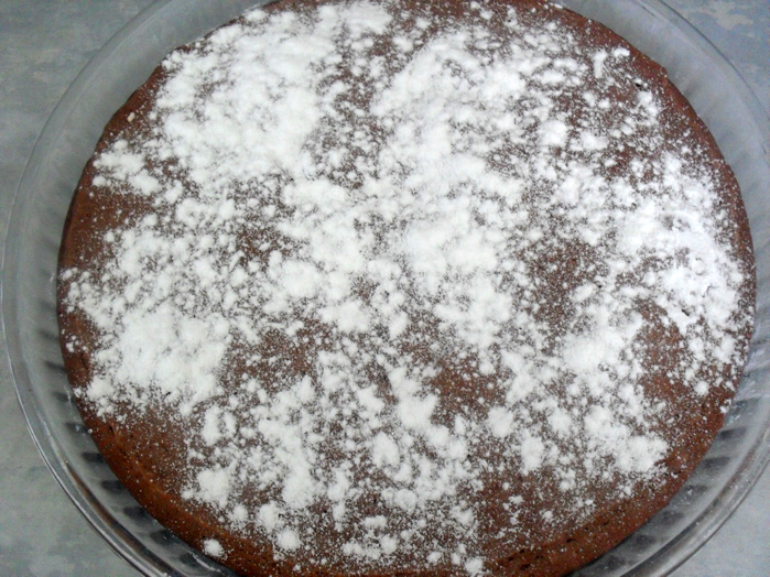 * какао 5 ст. л. * мука 1.5 стак. * соль 1 ч. л. * сода (погасить в кипятке) 1 ч. л. * сахар 1 стак. * растительное масло 5 ст. л. * вода 1 стак. 1. Замесить тесто из вышенаписанных ингредиентов, дать настояться 10 минут 2. Вылить тесто в форму, предварительно размешав его еще раз. Поставить в разогретую до 180 градусов духовку. Время выпекания 30-60 минут в зависимости от размеров формы. 3. Готовый кекс охладить и, по желанию, обмазать растопленным шоколадом или обсыпать сахарной пудрой.
