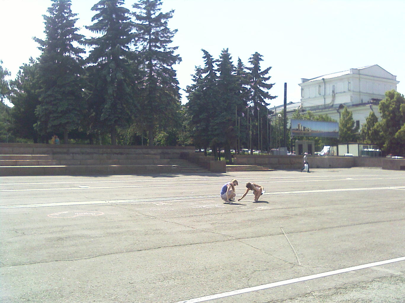 1. Девочки рисуют на асфальте ... "куда уходит детство, в какие города?"
