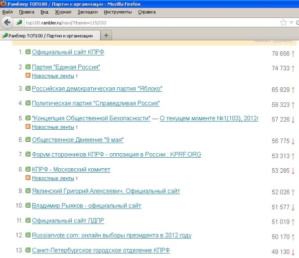 А сайт KPRF.ORG на 6 месте. Сайт московского комитета КПРФ на 11 месте.