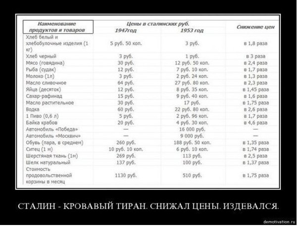 А вот цены при Сталине, которого сегодня так не любят наши либералы и Едро!