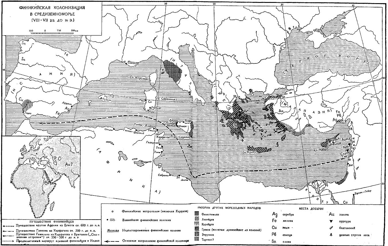 Карта: Финикийская колонизация в Средиземноморье (VIII-VII вв. до н.э.). |