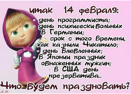 День св.Валентина - это для молодежи. Если хотят, пусть празднуют. Нам, советским людям это ни к чему. 23 февраля и 8 марта бы не забыли.