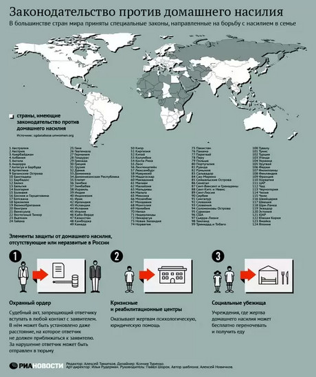 В России пока нет отдельного закона о предотвращении домашнего насилия. Два международных документа, действующих на территории РФ — Всеобщая декларация прав человека и Конвенция о ликвидации всех форм дискриминации в отношении женщин, — имеют декларативный характер. Российское государство не имеет права вмешиваться в частную жизнь до факта совершения насилия на этапе его предотвращения. Уголовный кодекс РФ предусматривает ответственность за умышленные преступления против жизни, здоровья и половой неприкосновенности граждан. Эти нормативные акты направлены не на предупреждение, а на ликвидацию последствий случившегося и начинают действовать после факта совершения насилия. В начале 2013 года комиссия Общественной палаты по безопасности выступила с предложением разработать и принять федеральный закон «О предупреждении и профилактике насилия в семье». В палате по этому вопросу прошли общественные слушания, в ходе которых было предложено несколько моделей закона. Одна из них предполагает внесение поправок в основные кодексы РФ для регламентации процедур привлечения к ответственности виновного лица, защите потерпевшего и свидетелей. Другой вариант предлагает определить порядок производства и рассмотрения заявлений о насилии в семье в самом законе. Третья модель рассчитана не только принятие специального закона, но и создание отдельного органа для рассмотрения заявлений о насилии в семье и для применения мер по защите потерпевших и свидетелей. http://ria.ru/infografika/20130208/921936798.html В МаксПарке существует одно деревянное идиото, которое носилось со спёртым у других невменяемых женоненавистников лозунгом: «Бей бабу молотом, станет баба золотом». Да кого оно сможет бить(?), если обдристалось Армии и дедовщины, дедов, представив в постоянно своём испуганном воображении, что они с ним сделают, едва рот-помойку свою откроет, которая не закрывается в безопасном МаксПарке. Отучил, теперь не произносит глупой поговорки. Сегодня этим оно не занимаюсь. Оно передано в надёжные руки лечащего личного психиатра «ПФ», который пытается врачевать оно Смотрим видео, оно на 55 минут, запаситесь терпением. Если нет терпения, то ставлю второй, ну очень укороченный. Проведу свою профилактику для невменяемых женоненавистников, только и способных с бабами воевать, да и то в Интернете, не с мужиками в реале Виталий Moscow |