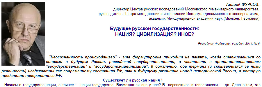 Начнем с государства-нации, а точнее — нации-государства. Возможно ли оно у нас? В перспективе и теоретически — да. Дело в том, что процесс формирования русской нации не завершен, более того, он деформирован. Нация в строгом смысле слова есть такая форма социоэтнической организации, базовой единицей ("кирпичиком") которой является индивид: нация не может состоять из племен, кланов, каст, полисов, общин — эти коллективные формы, охватывая индивида, не позволяют сформироваться нации. Не случайно нации начинают возникать в Западной Европе в XVII—XIX веках по мере разложения "первичных коллективностей". В Российской империи, где община просуществовала до начала ХХ века, условий для появления целостной русской нации не было. К тому же фокус групповой идентичности носил не этнический, а религиозный (православие) или монархический (самодержавие) характер. читай чукча.. а уж потом пиши..