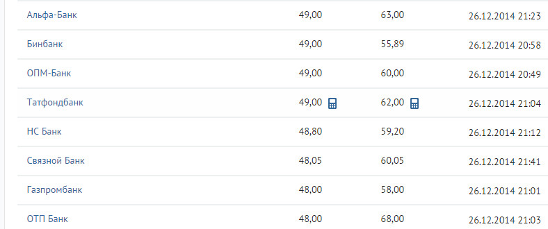 Ну вот,сегодня,если кто-то заметил рост доллара опять пошёл как и евро)Как предполагают,доллар в следующем году будет стоить примерно 130 р))Рост цен уже многие почувствовали)У нас например хлеб стал стоить 41 р)Сахар от 48-60)Мясо-380)