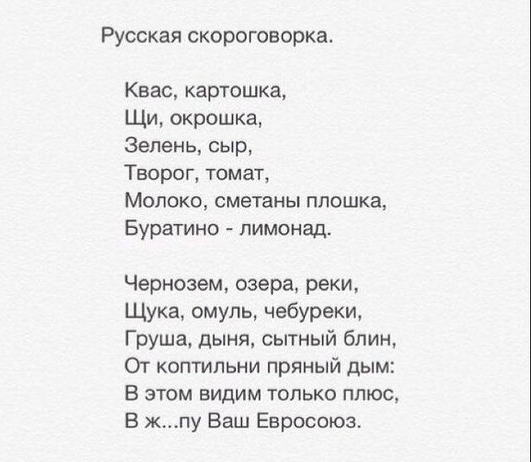 Этот план прекрасно отработан еще при советской власти. Когда наш народ жил бедно и убого, но считал, что живет в самой лучшей и счастливой стране мира, жалел заграничных пролетариев, негров и безработных, которые на самом деле жили раз в десять лучше нас. А все наши трудности, дефициты и нестроения объяснялись последствиями войны и происками врагов. Именно это нам скажут и теперь. Видите! Все против нас! Нас наказывают за нашу смелость и гордость! За то, что не прогибаемся под Америку! Боятся нашей силы, завидуют! Перед лицом врага можно и потерпеть, объединившись вокруг президента. |