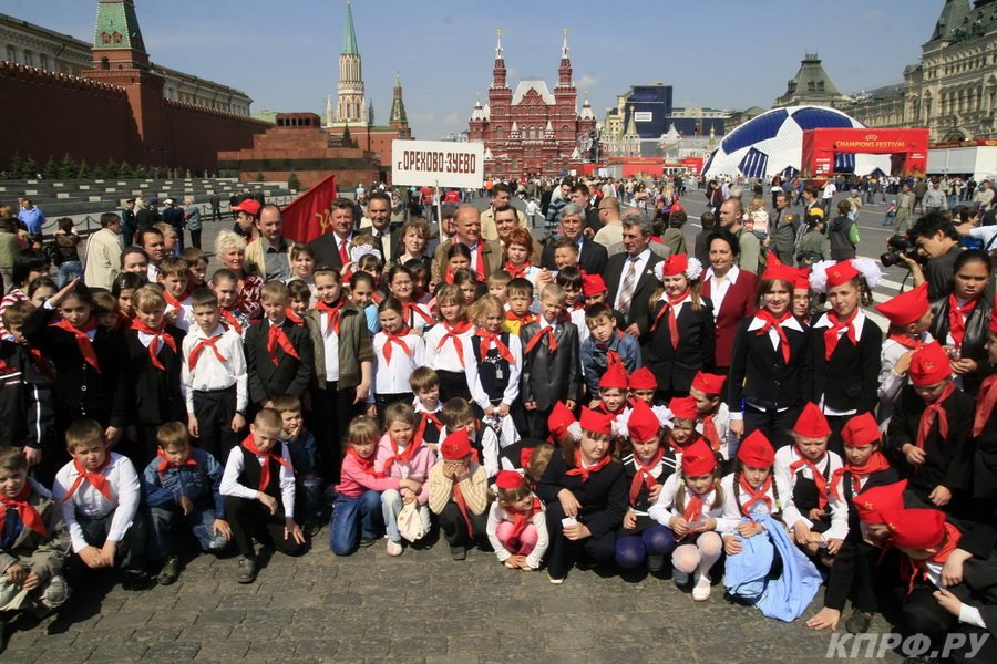 В Александровском саду в этот солнечный весенний день собрались тысячи людей. Вместе с пионерами сегодняшнего дня в торжественной линейке приняли участие пионеры всех поколений. Среди них немало ветеранов Великой Отечественной войны, военачальников, ученых, общественных деятелей, тех, кто принес славу Советской стране. Четырем тысячам юных пионеров из Москвы, Московской области, Владимирской, Калужской, Рязанской, Тульской, Ярославской и ряда других областей в этот день были впервые повязаны красные галстуки. Среди тех, кому выпала почетная обязанность их повязать – руководители ЦК КПРФ во главе с Г.А. Зюгановым и И.И. Мельниковым, депутаты-коммунисты Государственной Думы.