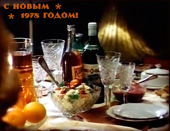 В 1978 году новогодние столы были еще изобильней, чем на этой открытке