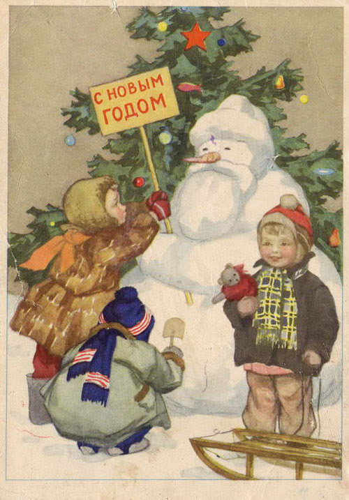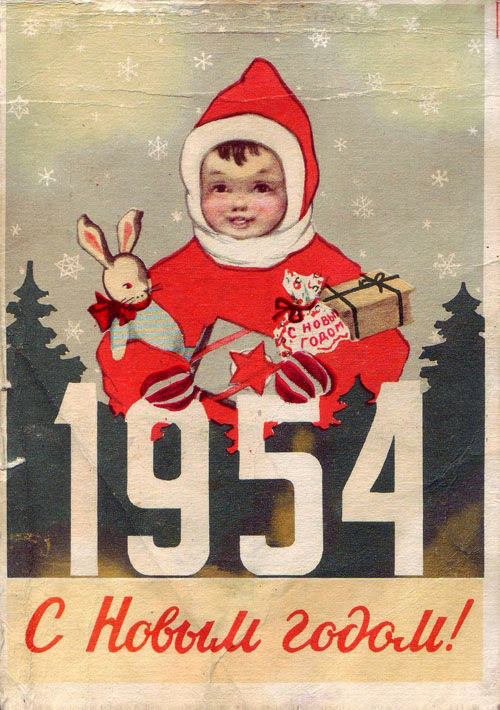 Бесподобный послевоенный малышок новогодничек! А ведь еще в 1948 году тиражи новогодних поздравлялок были мизерные!