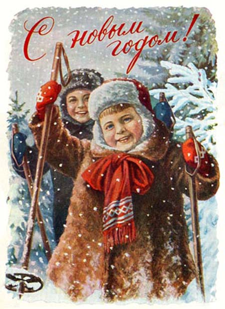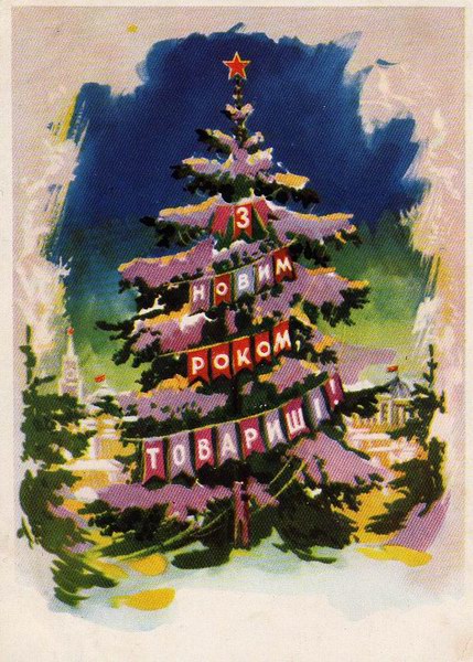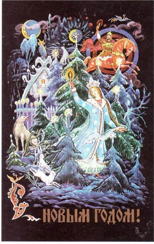 А это 1966 год. И новогодняя открытка в стиле хохломской росписи