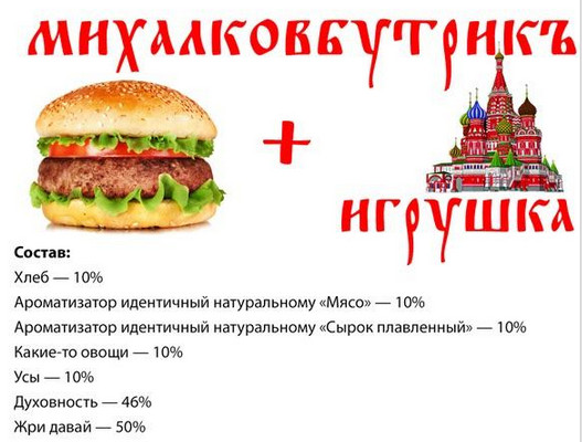 А вы в курсе,что Михалкову и Канчаловскому выделили миллиард рублей на отечественный фастфуд?))Интересно,как они будут называться?Миалгамбкргер?))А какое качество интересно будет?))