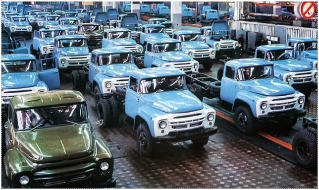 Ведь это самая успешная модель бывшего автогиганта, отмечающего в этом году вековой юбилей. Проследим жизненный путь легендарного грузовика: от рождения до ухода на покой. Первые шаги К началу пятидесятых ЗИС-150, разработка которого началась еще в довоенный период, морально устарел. ЗИЛ-164, серийный выпуск которого начался в 1957 году, оказался лишь временным решением. По сути, это была глубокая модернизация все той же 150-й модели. Государству требовалась совершенно новая машина. Первые опытные образцы ЗИЛ-130 грузоподъемностью в четыре тонны были построены в конце 1956 года. Под капотом установили рядный шестицилиндровый двигатель ЗИЛ-120, знакомый по предыдущей модели. Но вскоре от этого мотора отказались в пользу нового агрегата. Двигатель V8 рабочим объемом шесть литров выдавал 150 л.с. Степень сжатия была всего 6,5 единиц, зато двигатель мог работать на 72-м бензине. На доводку и испытания автомобиля ушло шесть лет, и первые опытные партии были собраны в 1962 году. Но машины требовали дополнительных доводочных испытаний. Масштабное производство стартовало лишь 1 октября 1964 года. Явление народу Грузовик по тем временам получился новаторским, с невиданным для советского водителя уровнем комфорта. Рулевое управление было c гидроусилителем, а пятиступенчатая коробка передач оснащалась синхронизаторами всех, кроме первой, передач. Автомобиль спокойно трогался со второй, а первая ступень была нужна лишь для бездорожья или очень крутых подъемов. Потому ее сделали прямозубой. На фото прототип первой серии, построенный в 1956 году. Весьма смелым, даже по международным стандартам, был экстерьер грузовика. Внешний вид доверили молодому выпускнику «Строгановки» (Московского художественно-промышленного училища) Эрику Владимировичу Сабо. Ничего подобного до тех пор, да и потом, среди нашей грузовой техники не было. Рельефная решетка радиатора, стильные обводы кабины и, самое главное, панорамное лобовое стекло! Подобным изяществом могли похвастать разве что правительственные ГАЗ-13 Чайка и ЗИЛ-111. Автомобиль из первой опытной партии 1962 года. Для доводки новые ЗИЛы отправили в большие испытательные пробеги по Крайнему Северу. Еще одной отличительной чертой нового автомобиля стала расцветка. До этого основным цветом для подавляющего большинства советских грузовиков был хаки — чтобы оперативно мобилизоваться в случае войны. Но 130-й получил небесно-голубую кабину с белым передком. Конечно, были и другие цвета, в том числе и темно-зеленый. Но большинство автомобилей были именно голубого цвета. Серийный ЗИЛ-130 образца 1964 года. В таком виде автомобиль выпускался до 1978 года ЗИЛ-130 быстро завоевывал любовь водителей. Он оказался красивым, динамичным и комфортным. Грузоподъемность составляла пять тонн — больше собственной массы автомобиля. Но главное, что он получился очень выносливым. Расчетный пробег до капитального ремонта в 300 тысяч километров для шестидесятых был очень приличным показателем. В мае 1973 года провели масштабные ресурсные испытания 130-го на автополигоне НАМИ. Дистанцию в 25 тысяч километров он прошел за 12 дней. При этом ни одной поломки зафиксировано не было. Но, невероятно удачная конструкция отчасти стала и проклятьем завода… Хорошая энерговооруженность и прочная кабина сделали ЗИЛ-130 отличным «кроссменом». 130-е и сегодня продолжают 