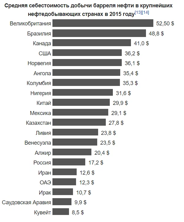 Чтобы вы понимали, откуда в воспаленных мозгах американских чиновников возникла мысль решать за нас, как и по каким ценам продавать нашу нефть и на что тратить заработанные деньги, имеет смысл взглянуть на следующую таблицу, где и почем добывается нефть: