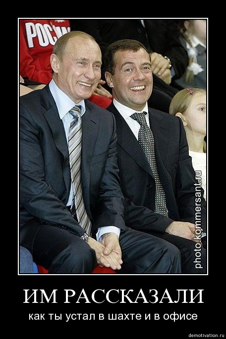 Медведев и Путин встречаются у Новогодней ёлки. Медведев: а где наша снегурочка Хиллари? Путин: сбежала к Прохорову с Немцовым-она с детства питает порочную страсть к рослым мужикам.