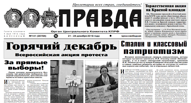 Хотел разместить это сообщение (статью на сайте и в газете "Правда" и мой комментарий к ней) под рубрикой "Оппортунизм", но доступ туда оказался закрытым, поэтому размещаю в данной рубрике