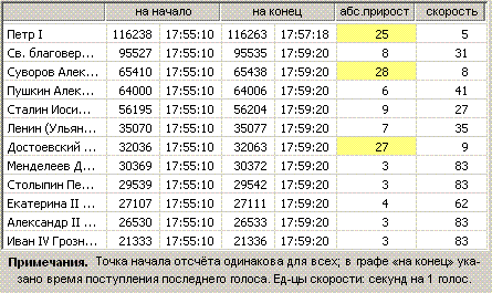 Вы метко отметили усиленную повторяемость в СМИ имён тех личностей, которых власть наметила нам в новые „гражданские святые” — и которые представлены в 12 героях последнего этапа шоу «Имя России». Это действительно, хорошо продуманная, „глубоко эшелонированная” кампания по промыванию мозгов, направленная на низвержение прежней, советской системы ценностей. Низвергая Ленина и Сталина, они низвергают память о наилучшем отрезке нашей истории, о советском периоде. Делается это, в том числе, затем, чтобы новые поколения и не помыслили когда-нибудь потребовать того уровня социальной защищённости, которые имели граждане СССР. Чтобы никто и никогда не заикнулся о праве на труд, на достойное пенсионное обеспечение, на бесплатное образование — всё это со временем будет преподноситься как пропагандистская выдумка! А неоспоримые доказательства преимуществ социализма будут нейтрализоваться образами «врагов и тиранов», создаваемыми в отношении Ленина и Сталина. Глядя на всю эту вакханалию лжи, можно ругать советскую власть лишь за то, что слишком мягкой была к тем, чьё „инакомыслие” было направлено против интересов подавляющего большинства трудящихся, в защиту свободы лжи, права капиталистической эксплуатации (которая в русских условиях всегда принимает крайние формы, от жульничества до прямого порабощения) и свободы вывоза и траты за границей того, что недоплачено, недодано и просто украдено у народа. Забыть исторические параллели с СССР — эта задача особенно актуальна для нынешней олигархической верхушки сейчас, когда стабилизационный фонд профукан, и все тяготы кризиса будут возложены на простых трудящихся. С 1973 по 1983 годы мир потрясли два крупнейших экономических кризиса (1973-75, и 1980-82), которые советские граждане никак не ощутили! Хлеб, масло, квартплата — за границей цены на всё росли в разы! — а у нас оставались теми же самыми, причём зарплата стабильно, год от года росла! Подорожал разве лишь бензин, но разве не смешной была сохранявшаяся с 1961 года цена 7 копеек за литр? Дешевле газировки! Зарплата дворника равнялась 1000 литрам бензина, а вчерашний студент с ходу получал на своей работе эквивалент 1800-2000 литров!Вот почему честное голосование выявляет очевидное лидерство Сталина и Ленина по „шкале исторических ценностей”. Вот почему враждебные народу СМИ идут на прямую ложь, на беззастенчивые „накрутки” рейтинга, итоги которого они хотят представить как «глас народа». Единственное, что вы переоцениваете, уважаемый lin, в своём письме — это причинно-следственную связь между агитацией СМИ и состоянием рейтинга. Этой связи нет. Движение котировок рейтинга (кроме Ленина и Сталина) не зависит ни от заявлений политиков, ни от содержания передач СМИ. Никто не кидается к компьютерам, заслышав по ТВ что «Невский — героистый из героев», или что «Пётр I — олицетворение тех идеалов, к которым Россия должна стремиться в эпоху высоких технологий». Чушь это всё, и профанация! Если бы рейтинг, подобно биржевым котировкам, действительно зависел от внешних факторов — мы имели бы на графике чёткие, но непродолжительные по времени всплески числа поданных голосов. Этого нет. На протяжении всей сегодняшней ночи продолжается равномерное и почти прямолинейное вливание голосов Суворову и Достоевскому. В Москве глубокая ночь, на ДВ уже утро — 