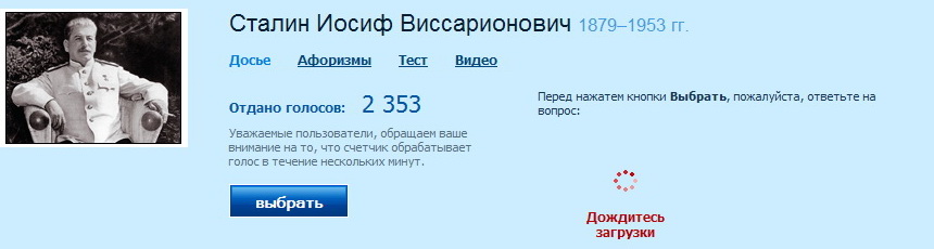На страницы голосования за Сталина красуется "Дождитесь загрузки" очень долго, и не загружается, минут 5 ждал затем обновил несколько раз и всё равно "Дождитесь загрузки".