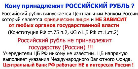 Центральный банк Российской Федерации (Банк России) сейчас независим от правительства России (создан по указке США). Надо ввести его в подчинение правительства России.