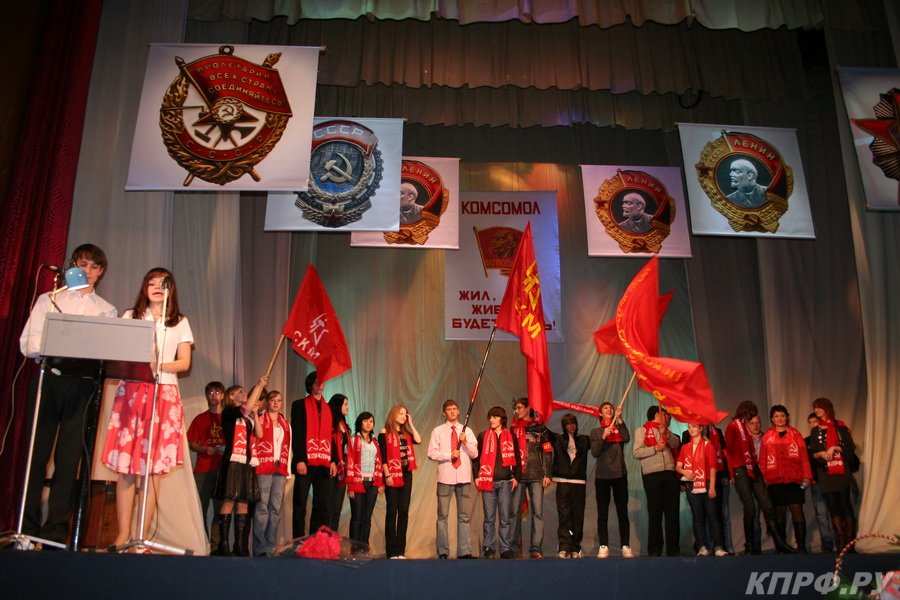 В древнем русском городе Псков 25 октября 2008 года прошло торжественное представление, посвященное 90-летию Всесоюзного Ленинского Коммунистического Союза Молодежи. Представление прошло при полном аншлаге в центре города в псковском академическом театре драмы имени А.С. Пушкина, здание которого было построена в начале прошлого века на народные деньги и называлось Народным домом. Символично, что в нем проводились первые заседания Совета рабочих, крестьянских и солдатских депутатов. В отличие от праздников, организуемых властью, как торжественные поминки по комсомолу, праздник в Пскове проходил под девизом «Комсомол жил, жив и будет жить!». Это был подарок нынешних комсомольцев ветеранам ленинского комсомола, был своеобразным отчетом современной молодежи о том, что они знают, помнят и хранят в своей памяти историю революционных преобразований страны, сделавших молодежь вперёд идущей. В представлении была показана героическая история комсомола. Были приведены убедительные факты, свидетельствующие о том, что он стал настоящей школой жизни для десятков миллионов нынешних жителей России. Представление прошло на высоком эмоциональном уровне. Оно укрепило духовные силы его участников и уверенность в том, что дело комсомола, устремляющее молодое поколение к коммунизму, было правильным. В ходе представления была вручена медаль ЦК КПРФ «90 лет ВЛКСМ» первому организатору Псковского комсомола Леону Поземскому (посмертно), погибшему от рук белобандитов. Восторженно участники представления встретили награждение медалью ЦК КПРФ бывшего секретаря ЦК ЛКСМ Эстонии Арнольда Константиновича Мери, получившего звание Героя Советского Союза за оборону Псковского города Дно в 1941 году. Арнольд Мери и сегодня продолжает борьбу с наследниками фашистов в Эстонии, которые пытаются посадить его за решетку в 90-летнем возрасте. Его несгибаемость является примером для молодых антифашистов. Для получения награды в Псков приехал лидер эстонского антифашистского молодежного движения «Ночной дозор» Максим Рева. Это движение организовало сопротивление русской и эстонской молодежи против сноса в Таллинне памятника советским воинам, носящего гордое имя «Бронзовый солдат». Присутствующие поддержали идею создания международного антифашистского антинатовского фронта. Либеральный фашизм должен быть остановлен. Ветераны ленинского комсомола должны активно этому содействовать. Участники представления со слезами на глазах вставанием почтили память героев комсомольцев, погибших за Советскую Родину. Под мелодию «От героев былых времен» на экране прошли образы Александра Матросова, Леона Поземского, Зои Космодемьянской, псковских партизан: Клавы Назаровой, Марии Пынта, Ивана Никитина, Михаила Харчикова и других. В конце представления секретари обкома КПРФ Никитин В.С. и Копосов А.П. передали эстафету нынешним комсомольцам, вручив им Красное Знамя ВЛКСМ. Нынешний комсомол заявил, что будет активно продолжать лучшие революционные, боевые и трудовые традиции коммунистической партии. В ряды комсомола были приняты новые юноши и девушки. А первый секретарь псковского обкома СКМ Дмитрий Амелин огласил обращение комсомольцев ХХ1 века «К властьимущим!» На протяжении всего представления звучали песни в исполнении певцов Артема Шлепетинского и Ана