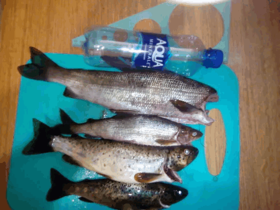 1)Хариус-38 см,вес 850 грам голову пришлось удалить заглотил до желудка 2) хариус поменьше,было жалко,душевно страдал,тоже заглотил, не глубоко,но при освобождении от "мушки" повредил жабры. 3)форель,зачётная,борьба была не шуточная,быстрый поток помогал ей сопротивляться,с трудом вытащил на берег. 4)Форель,этот экземпляр,было очень жалко,красивая рыба,всю красоту трудно передать,при вываживании повредила глаз.