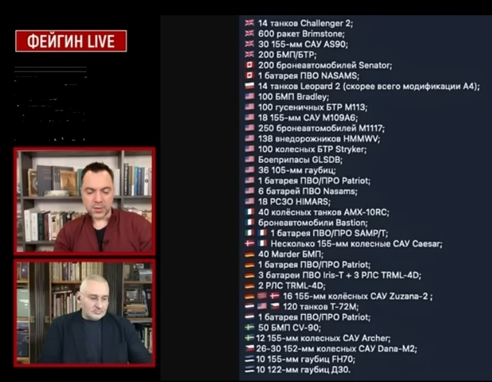 В четверг, 19 января, девять стран Европы приняли Таллиннскую декларацию, где содержится обязательство о масштабной военной помощи Украине. В документе поставили подписи министры обороны Великобритании, Эстонии, Латвии, Литвы и Польши, а также представители Дании, Нидерландов, Словакии и Чехии. Список военной помощи привел бывший советник Офиса президента Украины Арестович А. https://youtu.be/FgZKaRdCU-E Последний раз редактировалось vkvbd; 22.01.2023 в 03:30. |