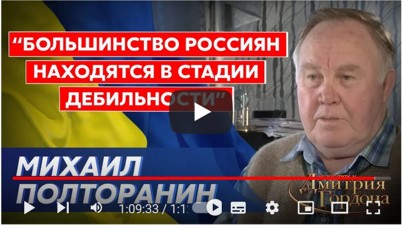 https://youtu.be/oCtxIekjRDs Полторанин: "Самое барахло поднялось на высшую ступень" Интервью Дмитрия Гордона с бывшим первым вице-премьером РФ, экс-министром печати и информации, близким сподвижником Ельцина Михаилом Полтораниным. "Пришла мафия в Россию, захватила власть, захватила Россию. Создала все условия для того, чтобы по регионам тоже образовались свои мафии, которые уничтожают народ. И они эту страну уже растащили... Они построили жизнь в России так, что люди в нищете живут и их зовут воевать. Русские приезжают в Украину и звереют: "Укры как живут, оказывается. Надо их всех насиловать!" Украсть унитаз, украсть собачью будку на Украине... Большинство россиян находятся в стадии умеренной дебильности. У россиян атрофировалась в мозгу способность понимать причинно-следственную связь. У Путина - политическая кессонная болезнь. Его же снизу вытянуло КГБ. У него закипают мозги. Когда у таких закипают мозги, им кажется, что они боги. Это сумасшествие какое-то в политической элите России. Они прошли во власть такие. Идет отрицательный отбор: это же самое барахло, которое поднялось на высшую ступень. Путин ведет Россию к гибели. Первой смоется Тува вместе с Шойгу, потом пойдет Кадыров, потом Дагестан, потом другие, потом Дальний Восток, и поехало... Таких обер-террористов, как наш, таких Левиафанов будет создаваться в мире все больше... В стране нет государства: есть одна мафия, у которой силовые структуры в кармане, и она в каждом районе, где своя мафия, вводит плату. Нет единого политического, экономического и юридического пространства. Что хотят, то и творят... Навального с удовольствием все предали. В России все молятся богу наживы и разврата. Война пока не закончится. Украине предстоит долго терзаться - у зла большие силы." P.S. Необходимо заметить, г. Полторанин М.Н. слишком льстит Украине в своем интервью. Сведения из американской Википедии: "20 января 2010 года президент Украины В. Ющенко присвоил С. Бандере звание Героя Украины. В июле 2019 года Администрация президента Украины Владимира Зеленского сообщила, что указ «О присвоении С. Бандере звания Героя Украины» от 20 января 2010 года действителен. Памятники Степану Бандере установлены в городах и селах Украины: Ивано-Франковске, Коломые, Городенке, Старый Угринов, Средний Березов, Грабовка, Никитинцы, Узин, Львове, Бориславе, Дрогобыче, Самборе, Старом Самборе, Дублянах, Трускавце, Тернополе, Залещиках, Бучаче, Теребовле, Кременце, Козовка, Вербов, Струсов и ряде других населённых пунктов. Музеи о Бандере имеются в Старом Угринове, Дублянах, Воле-Задеревацкой, Ягельнице, Стрые. Степан Бандера является почётным гражданином Тернополя, Ивано-Франковска, Львова, Коломыи, Долины, Луцка, Червонограда, Теребовли, Трускавца, Радехова, Сокаля, Борислава, Стебника, Жолквы, Сколе, Бережан, Брод, Стрыя, Моршина. Улицы имени Степана Бандеры существуют в Киеве, Львове, Ивано-Франковске, Коломые, Тернополе. В 2008 году Степан Бандера занял 3 место в телепроекте «Великие украинцы», уступив лишь Ярославу Мудрому и Николаю Амосову. Украинская националистическая партия "Свобода" ежегодно организует 1 января факельные шествия в честь дня рождения Степана Бандеры. Акции проходили в Киеве, Львове, Одессе и других городах. В декабре 2018 года Верховная Рада Украины приняла постановление о праздновании 110-летия Степана Бандеры." Последни