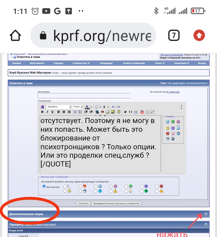 Почему- то у меня "управление вложениями" и другое отсутствует. Поэтому я не могу в них попасть. Может быть это блокирование от психотронщиков ? Только опции. Или это проделки спец,служб ?
