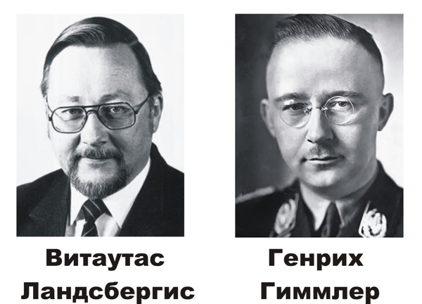 Слева перед вами Витаутас Витаутасович Ландсбергис, которого называют одним из главных разрушителей СССР, (лит. Vytautas Landsbergis, род. 18 октября 1932, Каунас) — литовский государственный и общественный деятель, политик, музыковед, искусствовед, публицист. Лидер движения за независимость Литвы «Саюдис», а также глава государства после обретения независимости от СССР до 1992 года. С 2004 по 2014 год — член Европейского парламента, председатель Верховного Совета Литвы (1990—1992), Сейма Литовской Республики в 1992 и 1996—2000. Справа, как вы уже догадались, Генрих Луитпольд Гиммлер, один из главных деятелей нацистской Германии, НСДАП и рейхсфюрер СС. Сходство просто поразительное. А лицо, как известно, зеркало души. Отец В. Ландсбергиса был министром коммунального хозяйства во Временном правительстве Литвы, которое объявило о своём существовании и восстановлении независимости государства 23 июня 1941 года, номинально просуществовав шесть недель. В 1945 году отец Ландсбергиса бежал в Германию. В 1959 году вернулся в Литовскую ССР. Был прощён и принят на руководящую работу. Работал старшим архитектором Института городского и сельского строительства в Каунасе до самой персональной пенсии. Витаутас в эмиграцию вслед за отцом не спешил, окончил среднюю школу и музыкальную школу. Учился в Государственной консерватории в Вильнюсе. В 1969 году защитил диссертацию на соискание учёной степени кандидата искусствоведения. Преподавал в Вильнюсской консерватории на кафедре научного коммунизма. Был членом правления и секретариата Союза композиторов Литвы. С ноября 1988 по апрель 1990 года был председателем Совета Сейма Саюдиса, первоначально называвшимся «Литовским движением за перестройку». В марте 1989 года избран народным депутатом СССР и участвовал в Съезде народных депутатов. На одном из заседаний закатил отвратительную истерику по поводу пакта Молотова — Риббентропа, обвинив СССР в сговоре с гитлеровской Германией и оккупации Литвы, при этом не упомянув, что именно благодаря пакту и СССР Литва вернула себе столицу Вильнюс и Вильнюсскую область, которые до этого входили в состав Польши. Ушел с заседания и увел с собой депутатов прибалтийских республик, фактически сорвав заседание. С тех пор эта тема застряла у него на зубах, как у кота дохлая крыса. 1 марта 1990 года при его активном участии Верховный cовет Литовской ССР принял декларацию о восстановлении независимости Литвы. В тот же день он был избран председателем Верховного cовета Литвы. Первые месяцы правления музыковеда Ландсбергиса в качестве главы Верховного Совета показали его полную профнепригодность в деле руководства республикой. К декабрю 1990 года недовольство в республике стало критическим. Выражение недоверия политике Верховного Совета и его главе приобрело массовый характер. В этой ситуации Ландсбергис и его окружение пришли к выводу, что «независимости не получим, если не будет пролита кровь». 7 января 1991 года правительство Литвы, возглавляемое К. Прунскене, значительно (в среднем по республике в 3,2 раза) повысило розничные цены на продукты питания (то есть провело «либерализацию цен»). 9 января у здания Верховного Совета Литовской Республики собралась многотысячная толпа, состоящая преимущественно из представителей русскоязычного населения, с лозунгами: «Долой парламент! Да здравствует Союз 