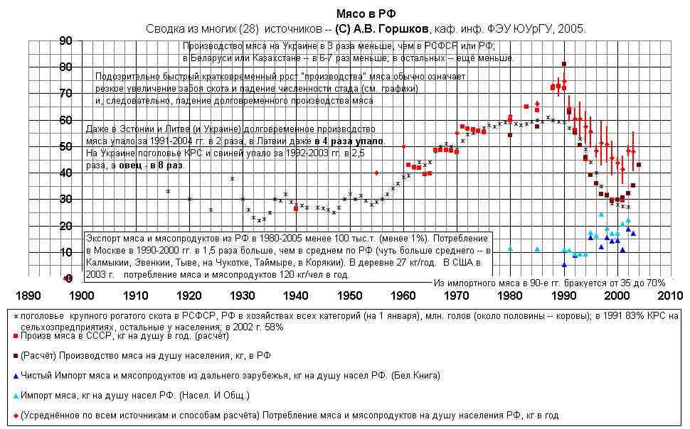 Уважаемый А. В. вы прекрасно оперируете статистикой и графиками, и, поверьте мне, Вы единственный человек сообщения которого я читаю, не считая идиотов, которые идеологию ставят впереди здравого смысла - (телегу впереди лошади) - их я читаю с удовольствием (есть возможность поизгаляться в красноречии), но графики, это еще не жизнь. Не знаю как Вы жили в начале 70-х годов прошлого века, но я очень хорошо запомнил очереди за хлебом - нас, детей 10-15 лет отправляли занимать очередь в 2-3 часа ночи, а иногда и с вечера, и наши каникулы, правда не полностью, а в июле-августе проходили в очередях за хлебом - до 11 утра простоять, потом поспать (ночь в очереди), а там еще и помочь родителям надо. Я не спорю с Вашими графиками - их рисовали и рисуют на потребу власти, но действительность с ними редко совпадает. Вы против?