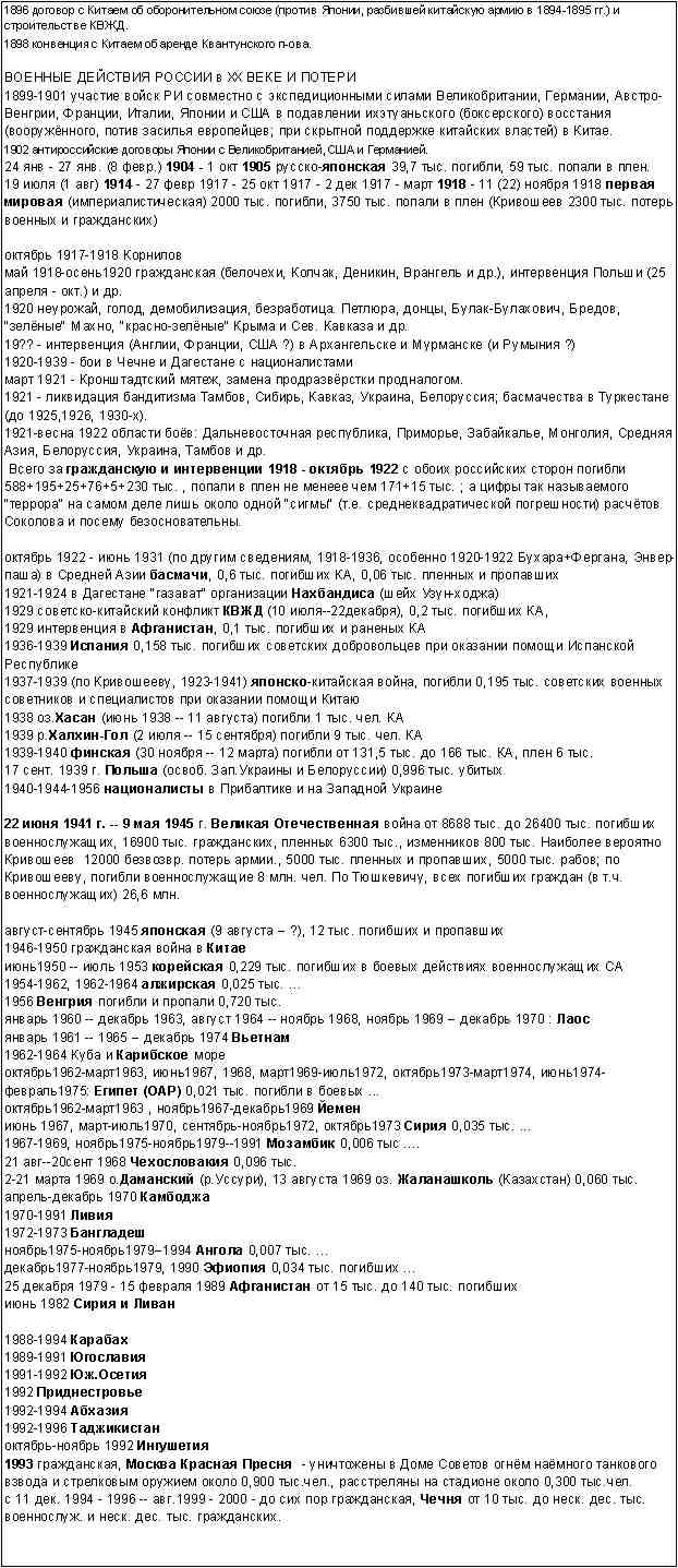 Войны. Перечень конца 19-го -- до конца 20-го вв.