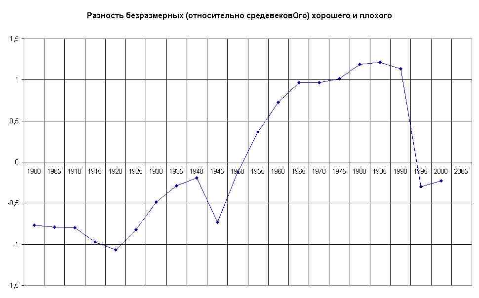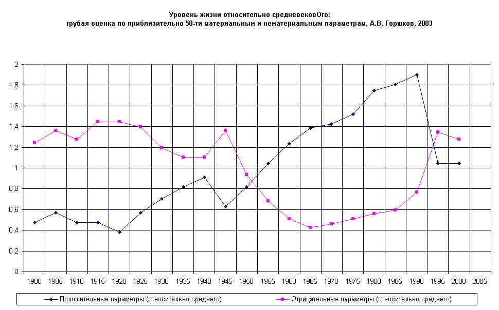 "Положительные" -- взвешенные по баллам соцопроса блага, -- дети, здоровье, безопасность, достоинство [не входило в вычисления графика], питание, образование, жильё, транспорт и связь, одежда и обувь. "Отрицательные" -- взвешенные по баллам соцопроса беды, -- смерти, преступность, болезни, исчерпание природных ресурсов, несправедливость [не входило в вычисления графика]. Последний раз редактировалось А.Лексей; 26.09.2008 в 19:40. |