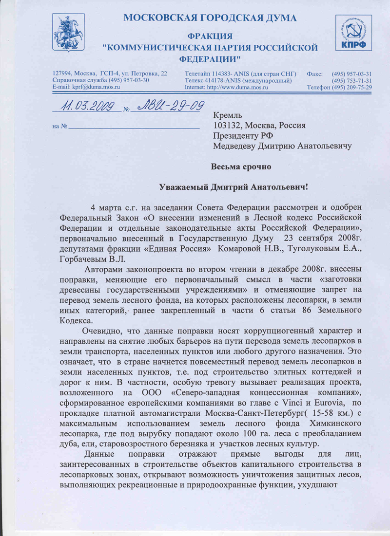 лесной кодекс, мосгордума