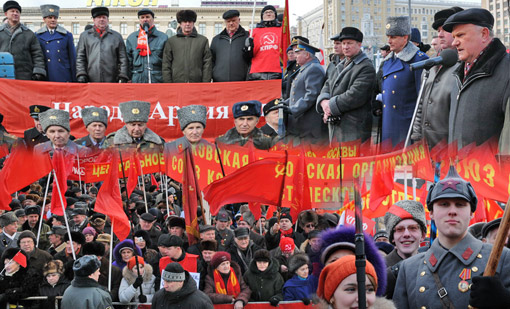 23 февраля наконец-то прекратился бушевавший над Москвой несколько дней снегопад. В этот день около 10 тысяч граждан пришли на Триумфальную площадь столицы, чтобы принять участие в митинге, посвященном 92-й годовщины со дня создания Советской Армии и Военно-Морского Флота. Акция, организованная КПРФ, носила не только праздничный, но и протестный характер.