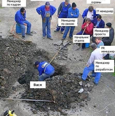Да и на фото у Вас все с лопатами - можно предположить что просто в одной яме не все поместились - следовательно они меняються и работа не останавливаеться. ![]() ![]()