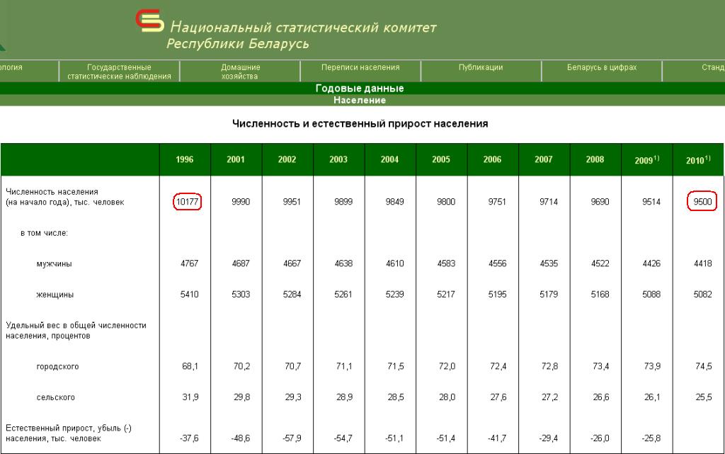 Вы сами можете с ними ознакомиться , пройдя по ссылке на сайт Национального Статистического комитета Республики Беларусь : http://belstat.gov.by/homep/ru/indic...population.php