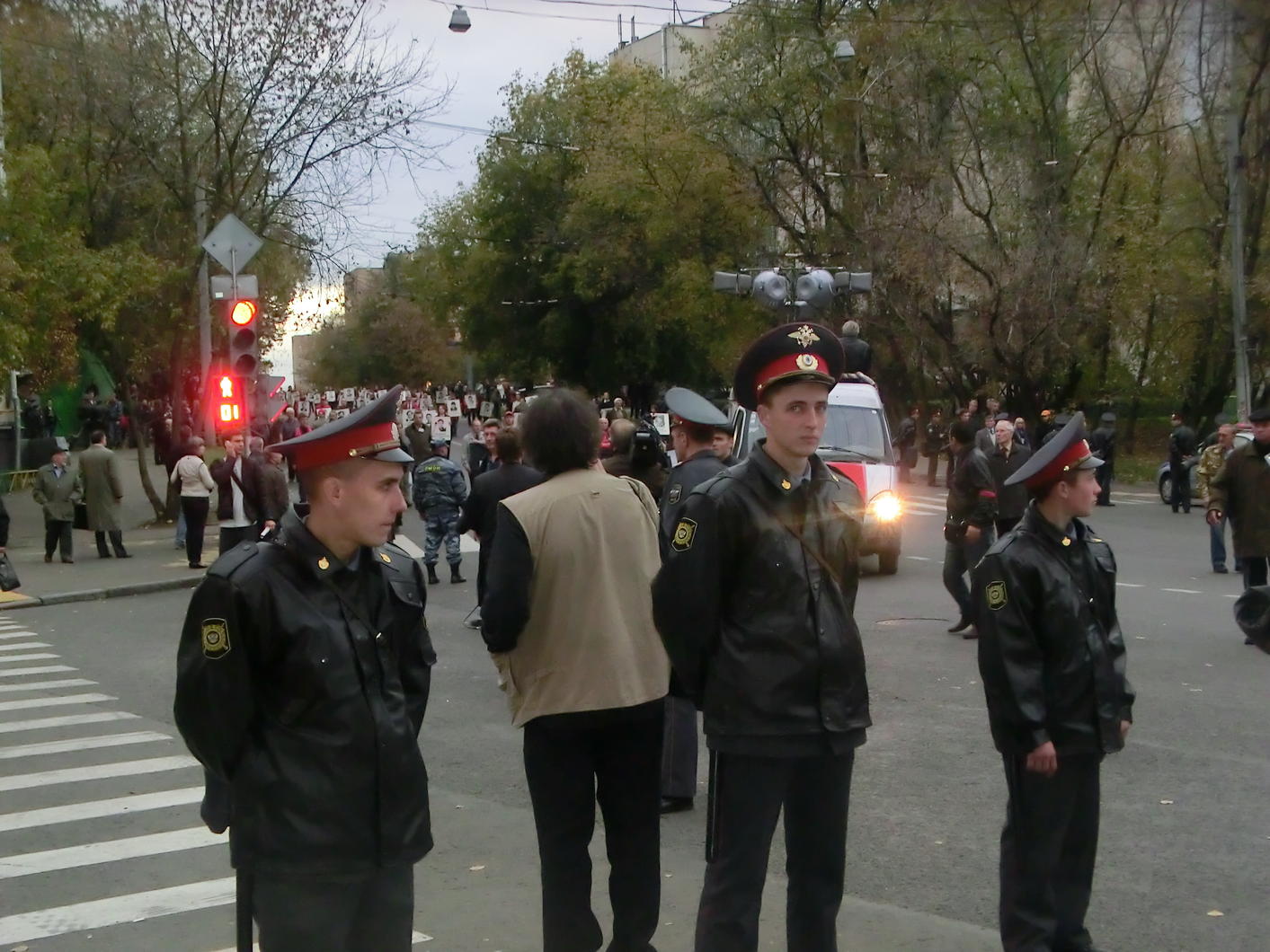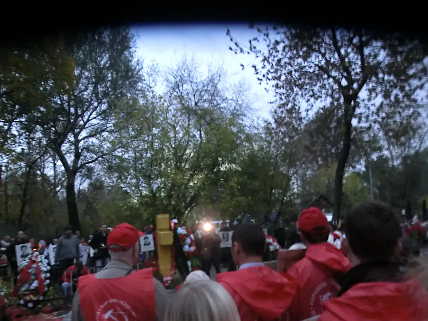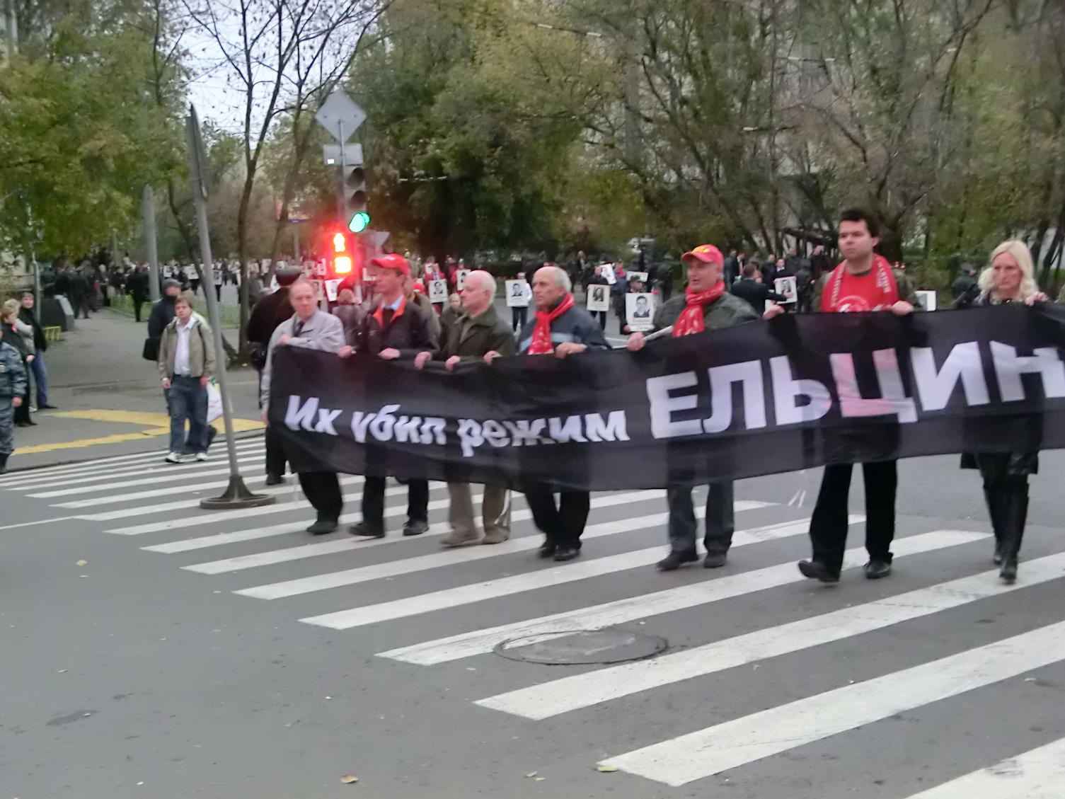 Хотя журналистов полно. Для чего они это снимают - непонятно. Может для архивов, или до лучших времён.И как всегда, очень печальное зрелище! Сотни портретов погибших нескончаемым потоком, в скорбном молчании. Отрадно, что много молодёжи от КПРФ Милиция как то очень доброжелательна в этом году. Новое поколение, котоые тогда ещё были детьми и сейчас не решаются вести себя грубо. И многие интересуются у присутствующих, как было на самом деле.