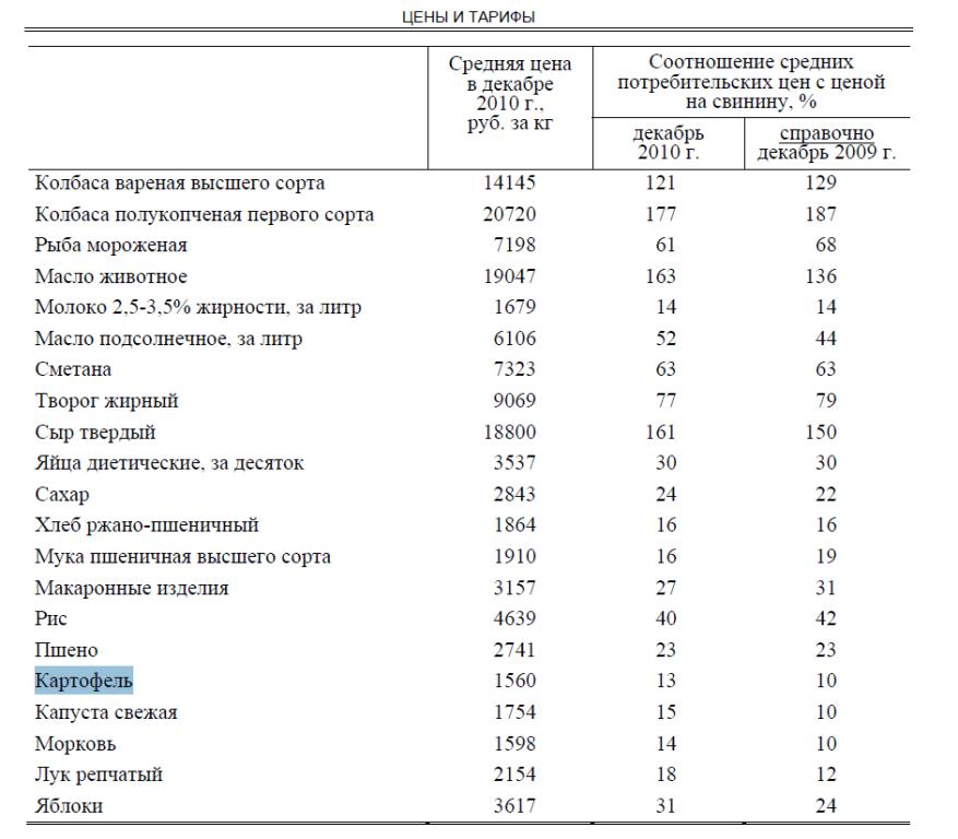 Во-вторых , откуда цифирь про 11 рублей за килограмм ? Здесь на сайте Белорусского правительства таблица цен на декабрь 2010 года . http://belstat.gov.by/homep/ru/indic...2010_12/10.pdf Картошка стоила 1560 белорусских рублей , что по декабрьскому курсу 96-98 бел.руб за 1 российский рубль составляло больше 15 рублей за килограмм . Отставной водолаз Спрос рождает предложение . Платёжеспособлный спрос Россиян выше , чем в Белоруссии .
