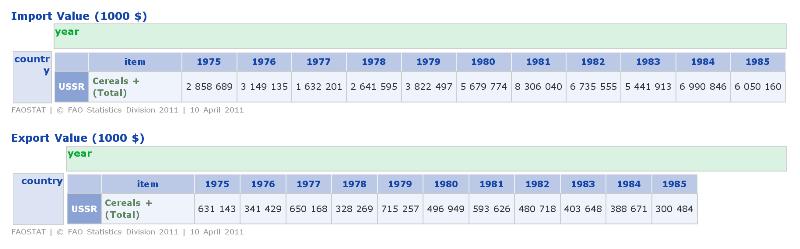 ![]() Экспорт-импорт злаковых 1975-1985 гг см.ниже во вложении . Если Вы так ставите вопрос , значит продешевила КПСС . Цитата: