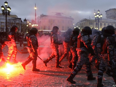 Вместе с тем, к митингующим обратился глава ГУВД Москвы Владимир Колокольцев, стоя на крыше торгового центра "Манежная площадь". Он попросил участников акции протеста разойтись и заверил их, что расследование гибели их товарища обязательно будет доведено до конца.