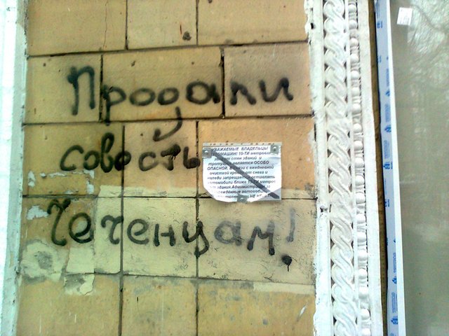 Судебное заседание сегодня не состоялось, поскольку потерпевшие чеченцы в суд не явились. Зато появились надписи на стене суда в поддержку милиционеров: "Продали совесть чеченцам", "Не тех судите" и "Сегодня менты , после Ваши детей." Последнюю надпись неизвестные пытались закрасить, но Правду, как говорится, не утаишь. Спасибо неизвестным авторам за граффити, а также всем неравнодушным людям за поддержку. |