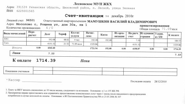 Зато плата взымается регулярно и в "нормальных" дозах. Счёт за газ и воду за декабрь: