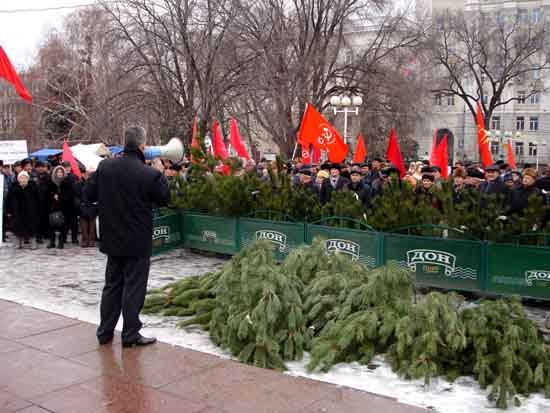 22 декабря жители Ростова-на-Дону в соответствии с ранее объявленным местом проведения митинга собрались на площади Советов. На площади, изображая торговлю, были установлены четыре палатки с новогодней мишурой, возле которых не было не одного покупателя, за исключением сотрудников милиции, а позёвывающие продавщицы с недоумением глазели на собирающийся народ. Для завершения картины вокруг постамента памятника была развернута торговая точка по продаже новогодних сосен. Интересующиеся товарами и соснами молодые люди, своим внешним видом не оставляли сомнений в своей ведомственной принадлежности.