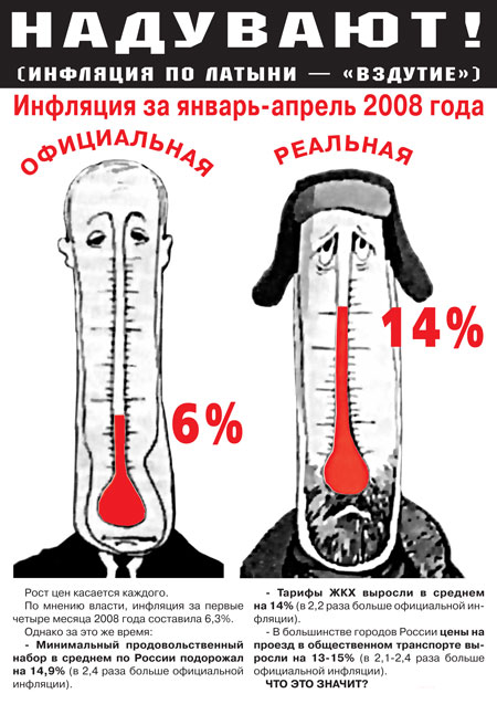 по официальным данным на апрель 2008 года инфляция в Российской Федерации составила 6,3%. Но существуют и другие факты, например: