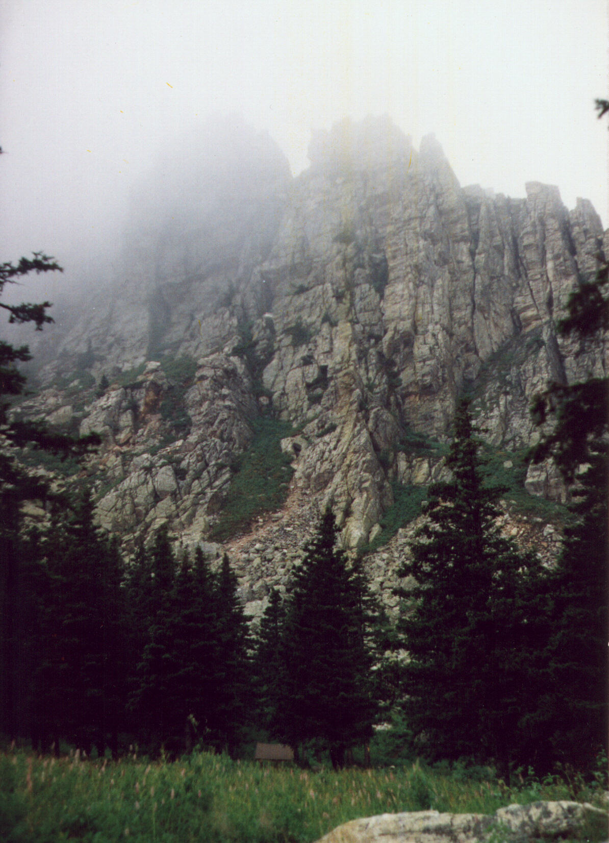 Урал, оз.Аракуль, хребет Шихан. Высота над уровнем моря 600, над уровнем озера 300, над подошвой отвесного скального гребня 60. Фото Алексея Владимировича Горшкова.