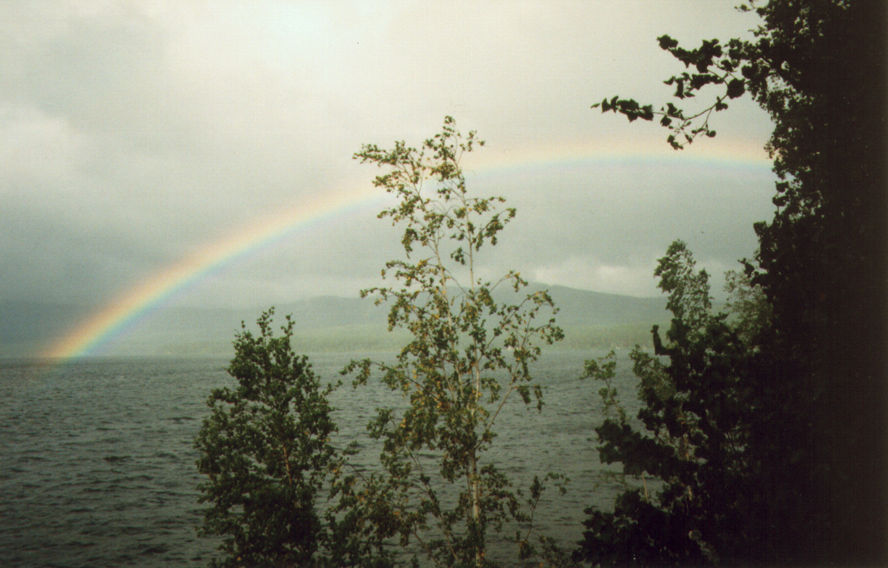 Озеро Тургояк, [Полу]Остров справа от Золотого Пляжа. Масса катамарана (без рамы, рубится на месте) 2х2 кг. Конструкция и изготовление А.В. Горшкова. |