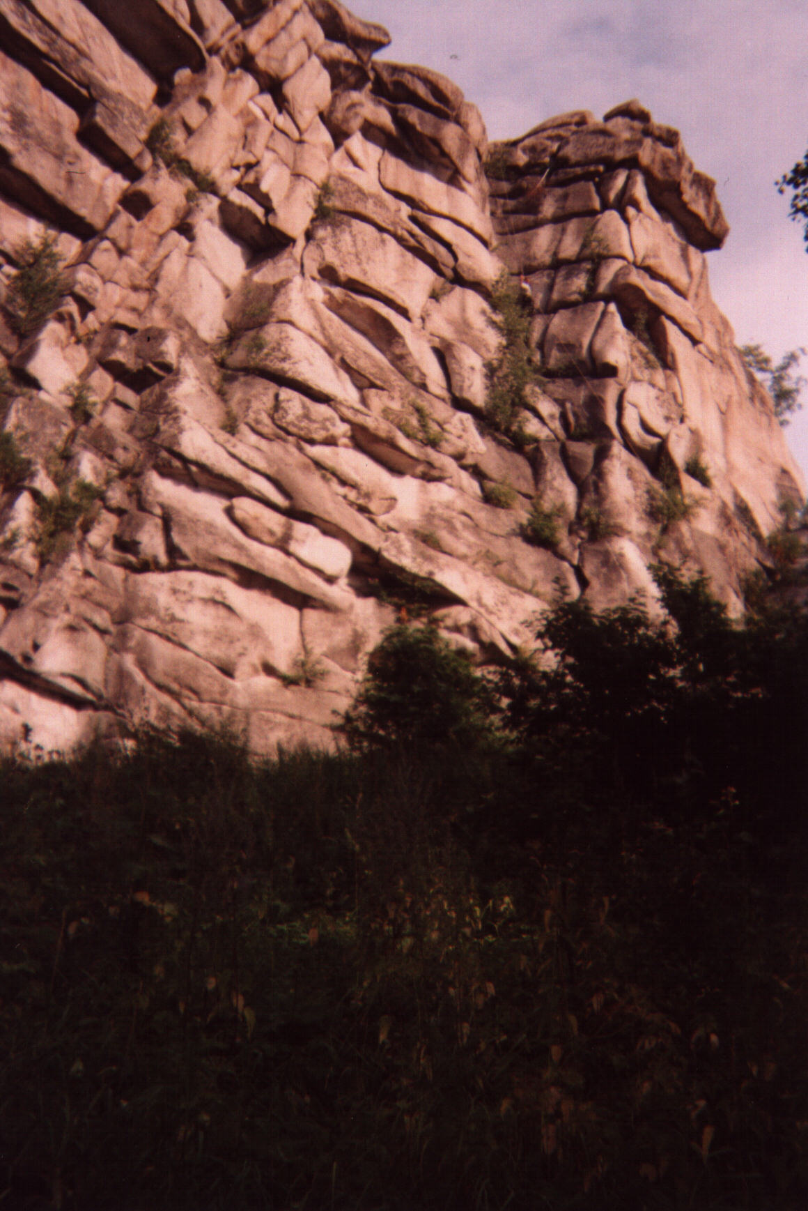 Шихан. Ширина скального гребня высотой 60 м. по верху менее 3 м., тропа в 1 шаг шириной, шаг влево-вправо -- и секунды свободного полёта (не рекомендуется ). верхние камни стоят на 3-х точках. Дыра сквозная, масса камня как у танка, надоест ему стоять -- присядет . Если выползти из камня с другой стороны на полметра левее, чем надо, то там камин отвесно вниз, и всё, конец фильма... Слабонервным рекомендуется уйти обратно вниз и пить какао.